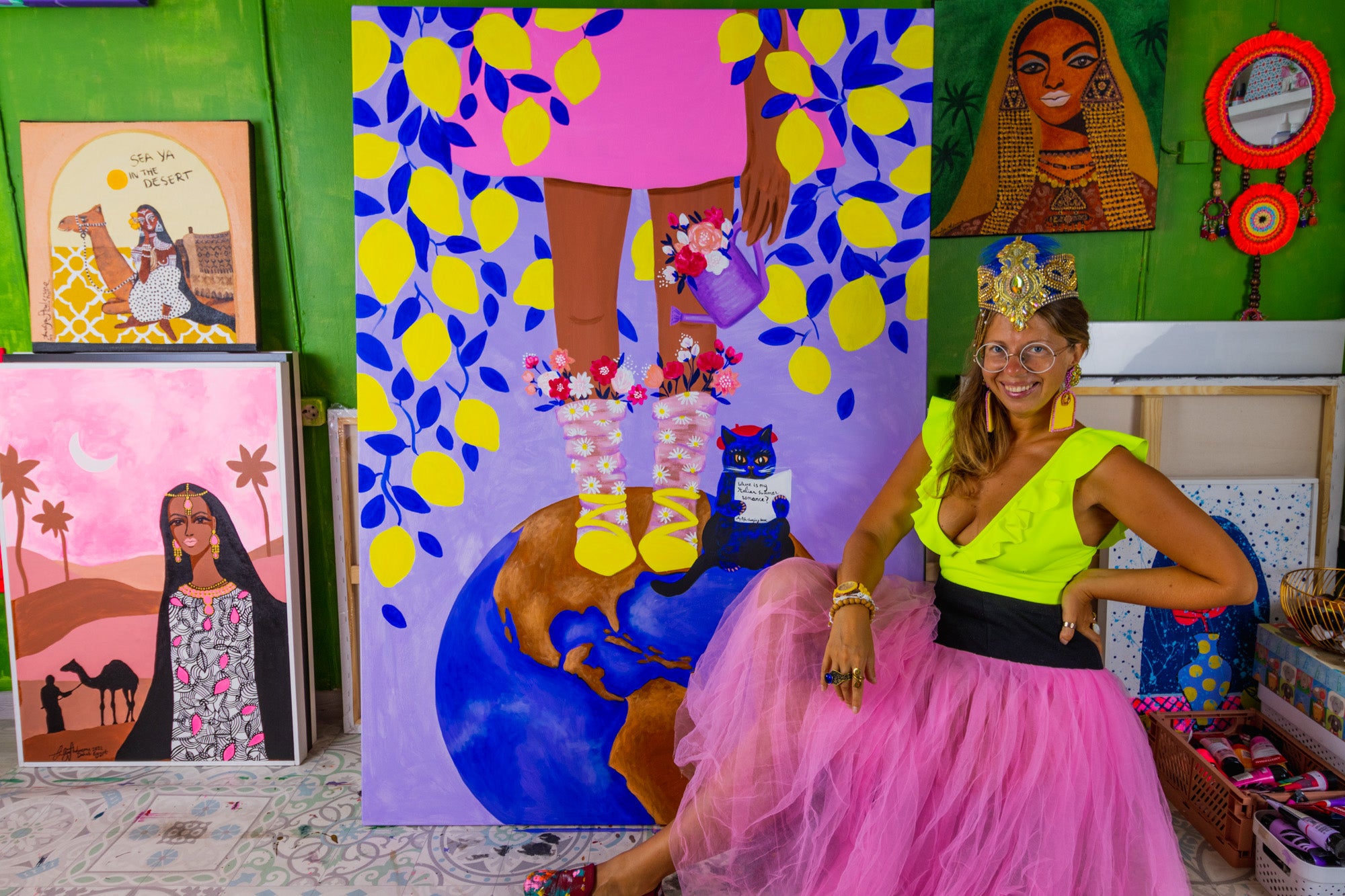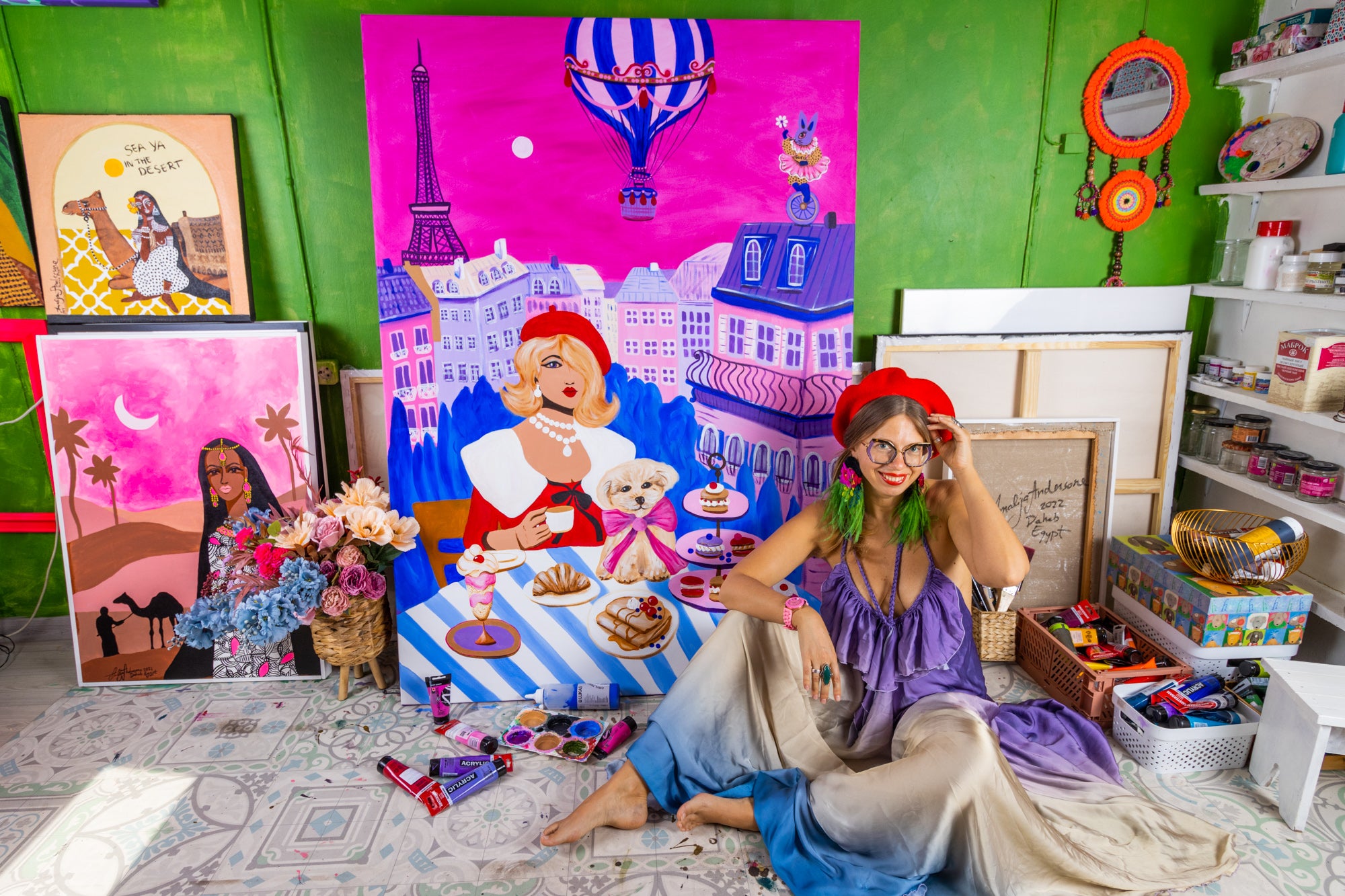 Bērnībā lasīju pasakas par svešām eksotiskām zemēm, arheologiem, ceļotājiem un princesēm. Tagad es turpinu dzīvot šajos stāstos – gleznojot tos un dodos pasaulē, lai smeltos iedvesmu savām gleznām. Dahabā atradu savu mīlestību pret kamieļiem un beduīnu princesēm, kādā Nūbijas ciemā iemīlējos krāsainos Āfrikas rakstos, Uzbekistānā sāku gleznot senās austrumu pasakas par Zīda ceļu, Grieķijas salās iemīlējos piecdesmit zilas ūdens nokrāsas, Spānijā aizsākās manu dienvidu vīriešu gleznu tēma, Latvijas vasara mani iedvesmo gleznot krāšņas sievietes ar ziedu motīvi, Bali Es iemīlējos un uzzīmēju mierīgu Budu un palmas rozā saulrieta debesīs.