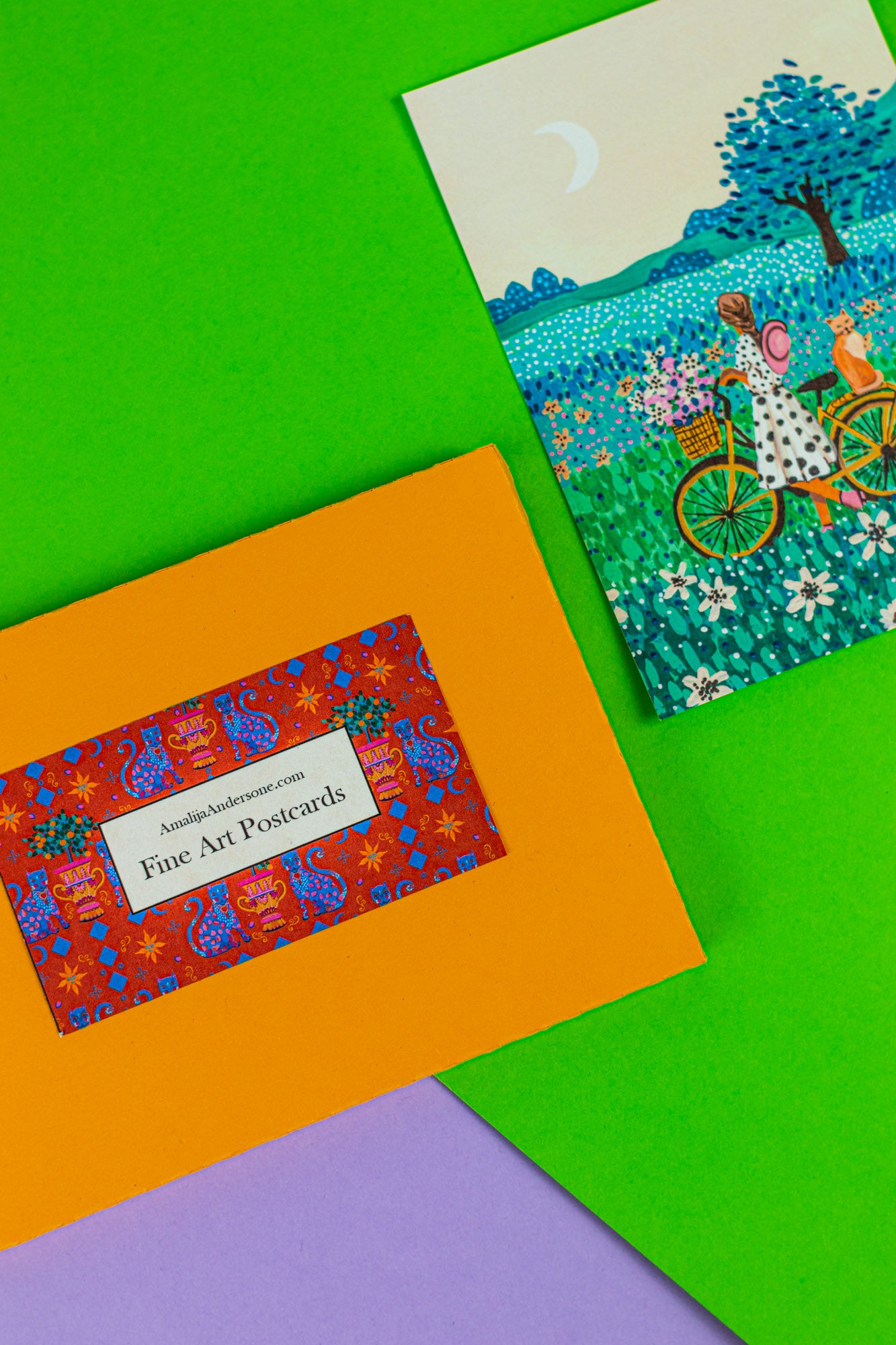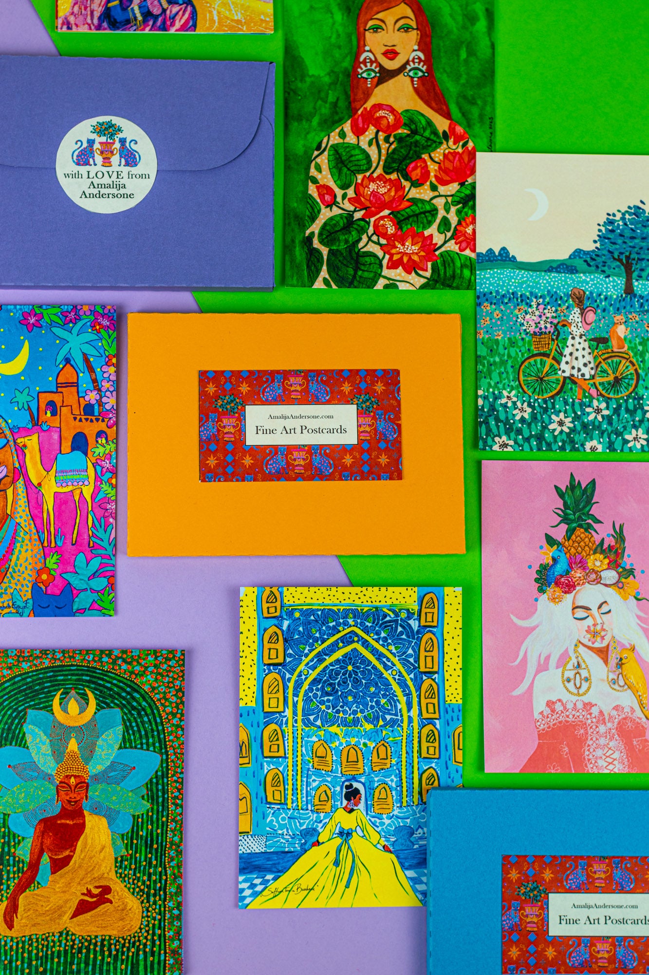 Es izveidoju šo pastkaršu kolekciju visiem tiem, kam patīk mana krāsainā māksla. Katra kartīte atspoguļo manas radošās pasaules spilgtās krāsas un dzīvespriecīgās tēmas, ienesot iedvesmu un siltumu jūsu ikdienas dzīvē.