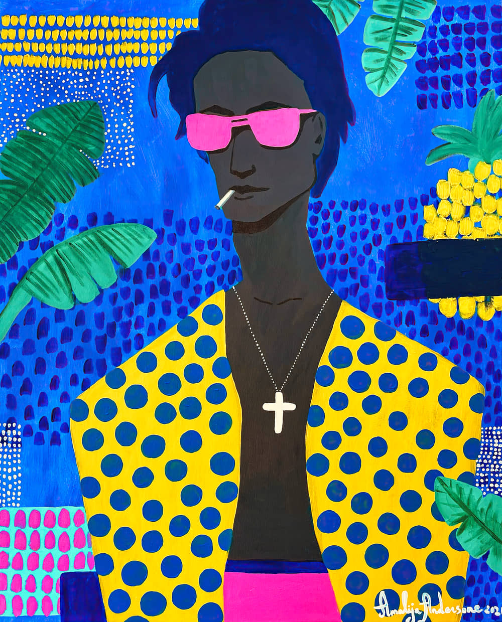 Pati tajā laikā to neapzinoties atklāju vēl vienu savu tēmu mākslā – dienvidu vīriešus, kuri valkā spožas krāsas, smēķē kā skursteņi, un jūtas bezgala apmierināti ar savu dzīvi.