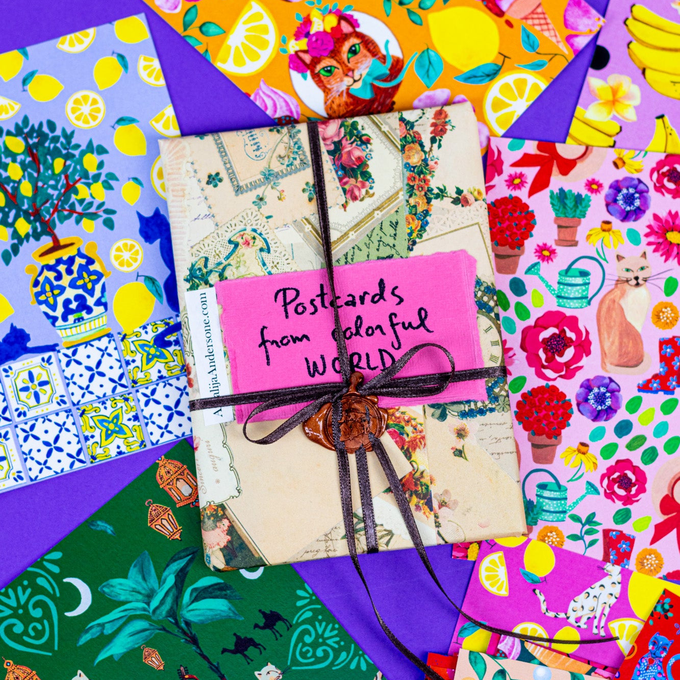 - Šīs nav tikai pastkartes — tās ir krāsu un dzīves svinības, kas radītas, lai iedvesmotu un pacilātu. Neatkarīgi no tā, vai tās sūtat mīļajiem vai izmantojat savas telpas dekorēšanai, tās ikdienas mirkļos ienes nedaudz mākslas.