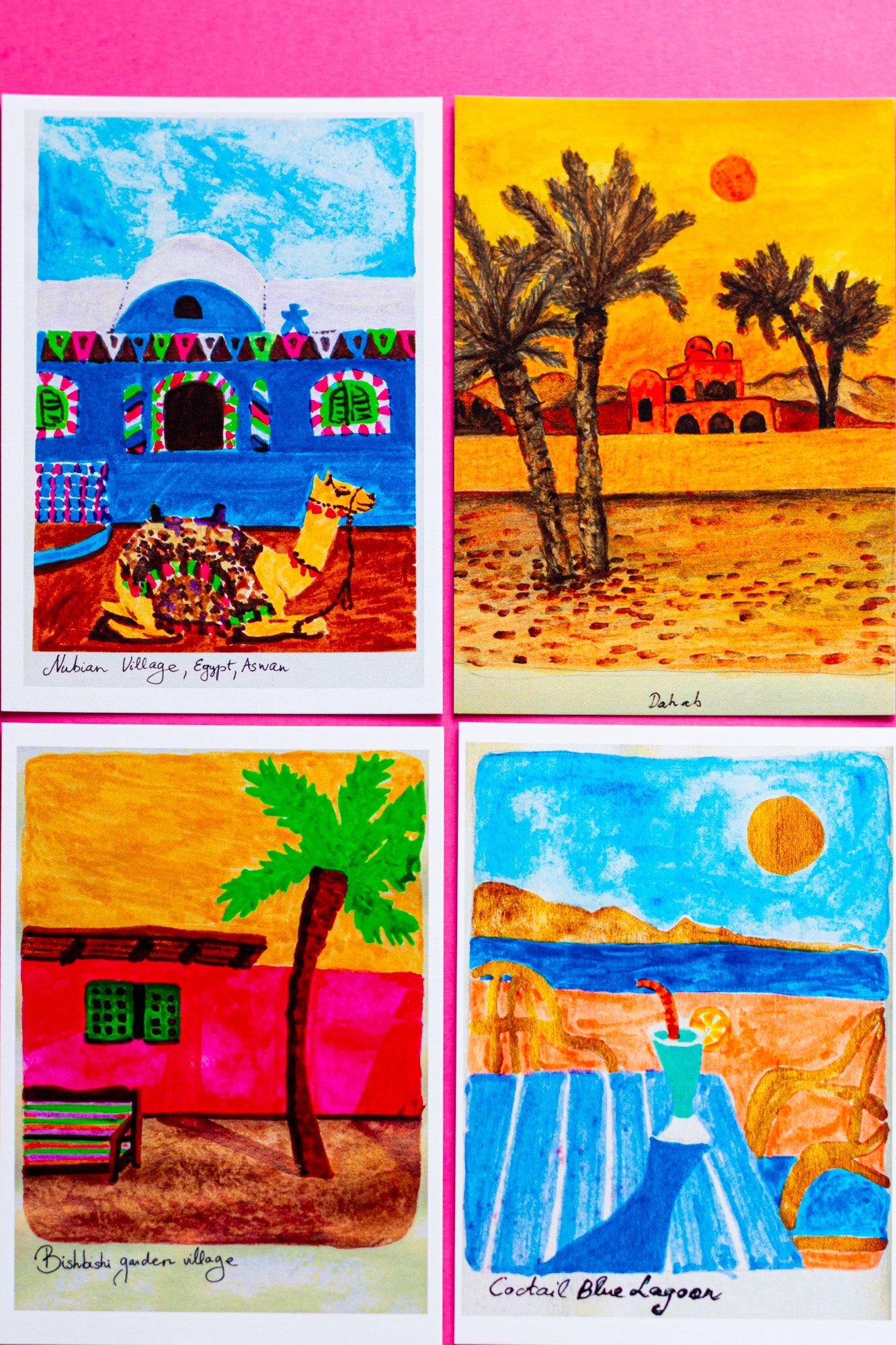 Ilgstoši dzīvojot Dahabā, Ēģiptē, paralēli gleznošanai tapa šie mazie darbi no ikdienas Ēģiptes ainiņām, skicējot uz zīmējot skaistumu sev apkārt. Visi darbi ir tapuši ĒĢIPTĒ.