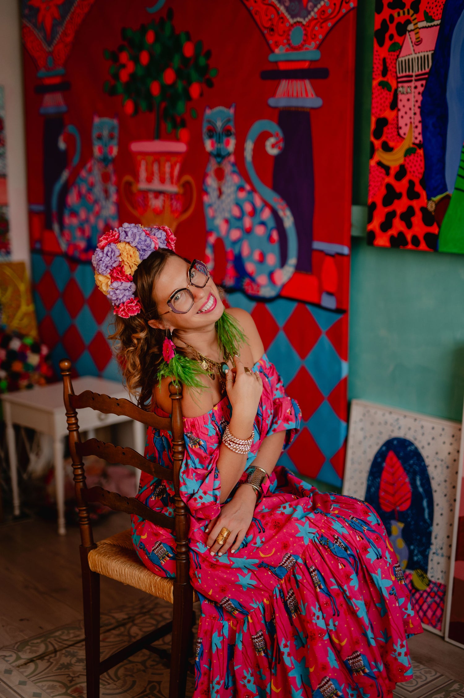 As a child, I read fairy tales about foreign exotic lands, archaeologists, travelers and princesses. Now I continue to live in these stories - painting them and going out into the world to find inspiration for my paintings. In Dahab I found my love for camels and Bedouin princesses, in a Nubian village I fell in love with colorful African patterns, in Uzbekistan I started to paint the ancient oriental tales of the Silk Road, in the Greek islands I fell in love with the fifty blue shades of water, in Spain the theme of my paintings of southern men began, Latvian summer inspires me to paint gorgeous women with floral motifs, Bali I fell in love and drew a peaceful Buddha and palm trees in the pink sunset sky.