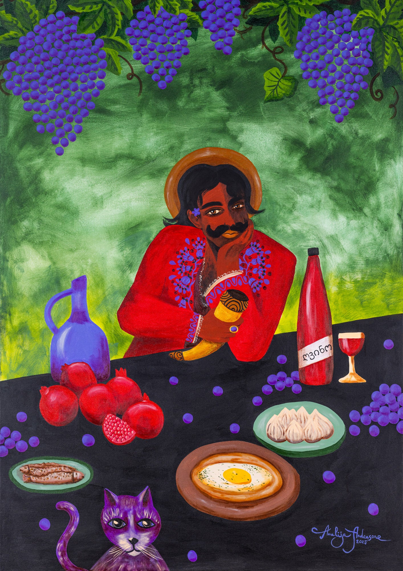 Georgian hospitality, toasts, abundance of food, wine, khinkali and khachapuri, pomegranates and grapes, conversations and laughter.